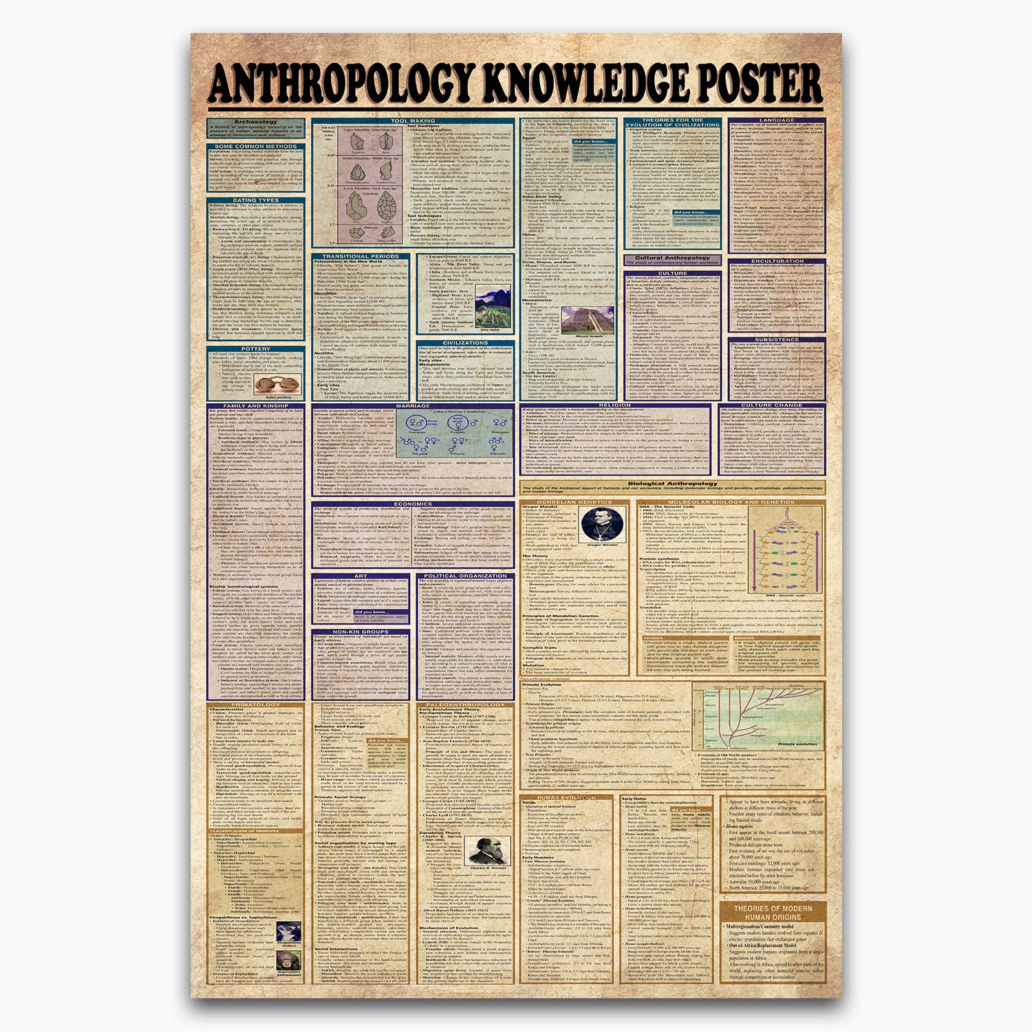 Vintage Anthropology Knowledge Poster Canvas Art For Office, Classroom Wall Decor.