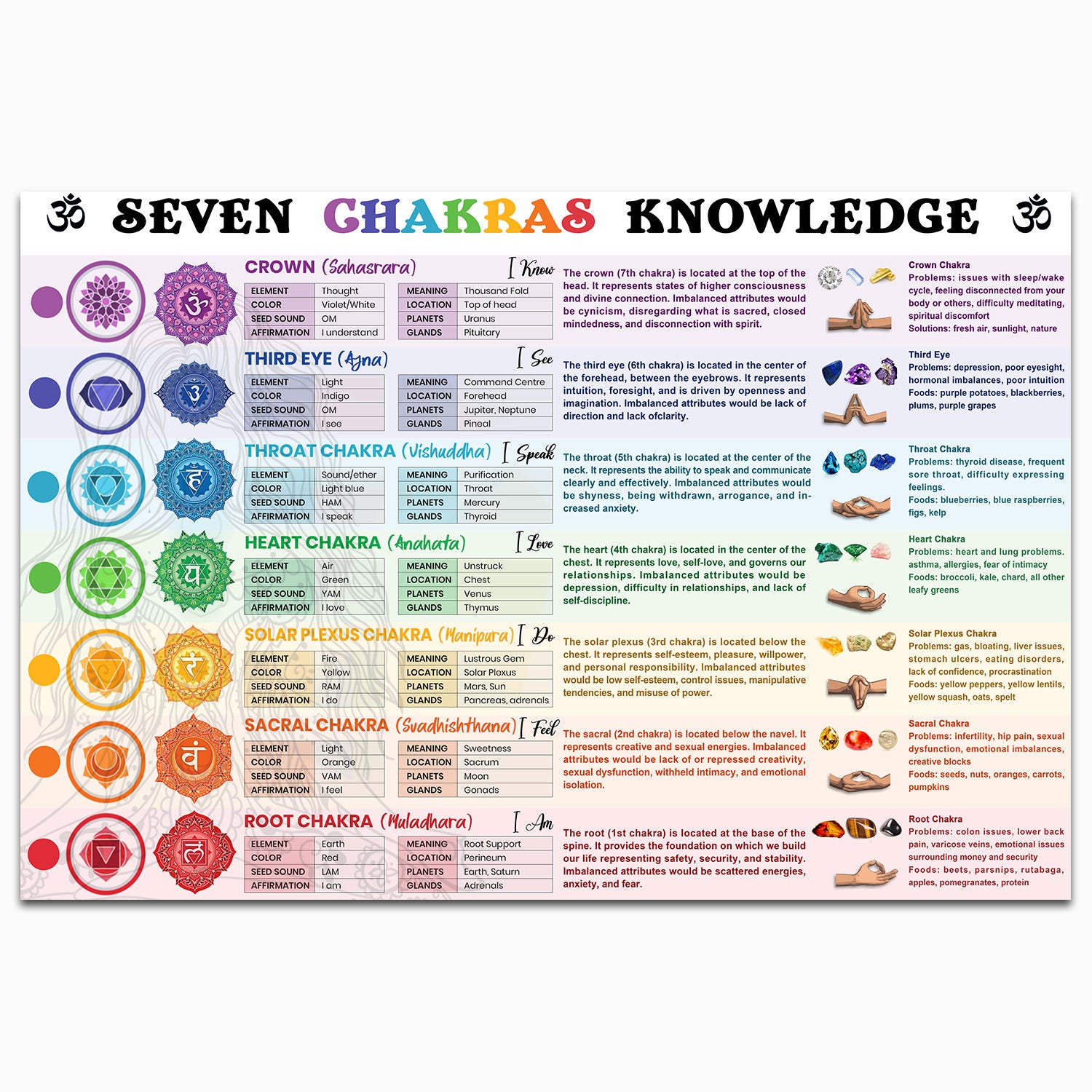 7 Chakras Knowledge Poster Chart For Wall With Meaning, Meditation Zen Vintage Canvas Wall Art Paintings For Yoga Studio, Meditation Space Decor, Gifts For Women, Yogi, Educational Print For Yogi